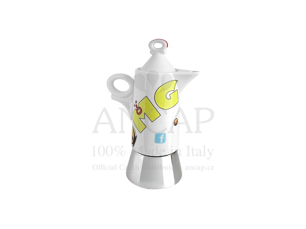 Dekorovaná porcelánová espressina na přípravu italského espressa z kolekce silnostěnného porcelánu na kávu Ancap Funny Web je vhodná pro použití na většině známých vařičů, včetně klasického sporáku na pevná paliva, plyn, elektřinu a zejména na indukci. Chuť kávy uvařené v porcelánové espressině Ancap není negativně ovlivněna vylouhováním pachutě hliníku či kovů jako je tomu u jiných kovových moka konviček bialetek. Na sortimentu z této kolekce jsou moderní zábavnou formou vyobrazeny ikony, internetové chatovací zkratky a emotikony pro všechny nadšené aktivní uživatele sociálních sítí.