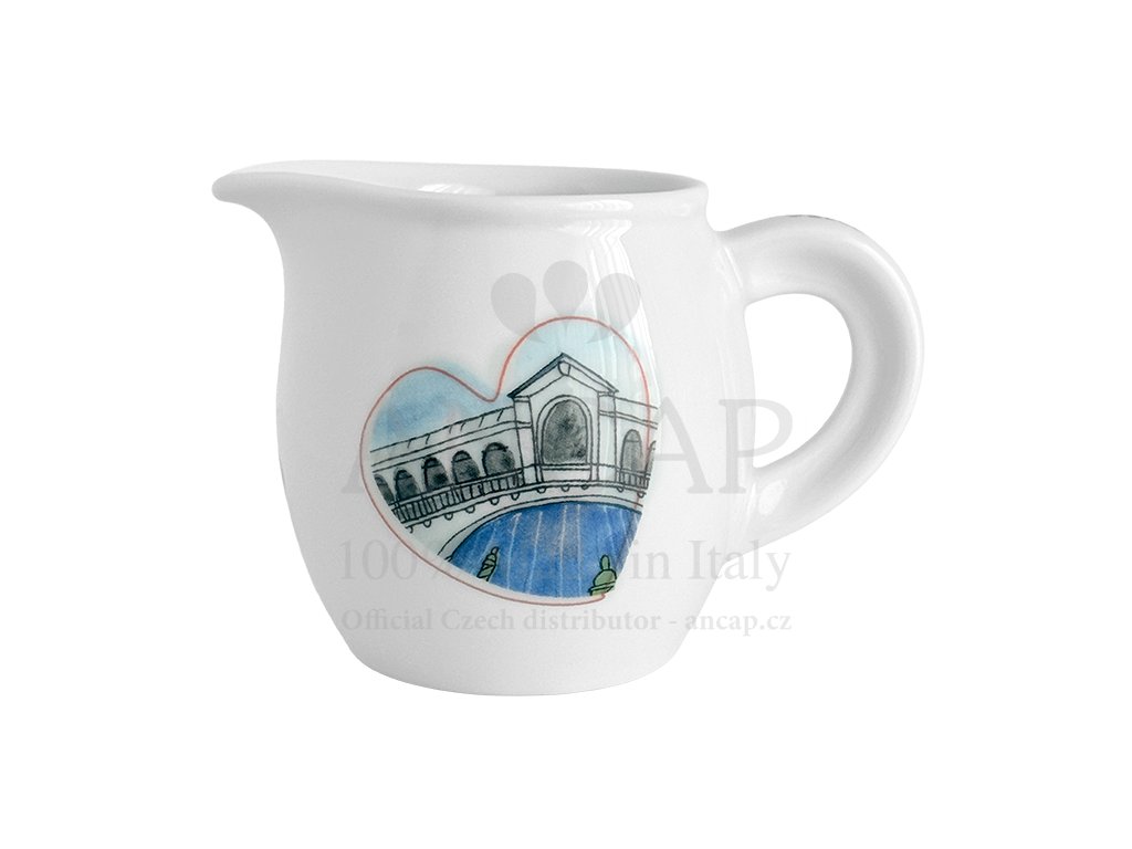 Decorated porcelain milk jug with handle made of thick-walled feldspar porcelain keeps the temperature perfectly. The milk jug carries a motif from collection Ancap Venezia, where you can find the most famous places in Italian Venice. Serve extended coffee the right way, prepare an espresso in a larger cup and offer hot water to the guest in this pot. Ancap porcelain is characterized by high resistance. The quality of the raw materials used guarantees solid and particularly strong porcelain suitable for everyday use.