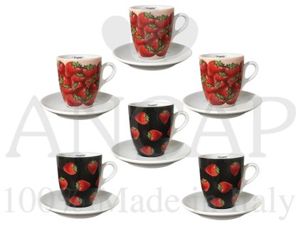 The collection of professional feldspar thick walled porcelain for coffee Ancap Fragole is decorated with a sweet pattern of ripe strawberries. Coffee cups with a round bottom will help create and maintain the right coffee foam for a long time. The massive walls of a feldspar porcelain cup are easy to heat and keep your coffee at the right temperature for a long time.